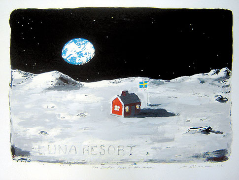 Ha valaha megvalósul Genberg 1999-es ötlete, akkor az tutira kenterbe veri a víz alatti hotelt: ugyanis a fejébe vette, hogy a Holdra is telepít egy klasszikus piros svéd házat. Annyira beleélte ebbe magát, hogy több svéd űrkutatási céget is megfűzött, az állami tulajdonú SSC akár 17 milliárd Ft-nak megfelelő svéd koronát is áldozott volna a projektre. Amiből egyelőre nem lett semmi, de ahogy a svéd mondaná: Ingen ko på isen, azaz nincs miért aggódni. A svédek is betehetnék a lábukat a Holdra