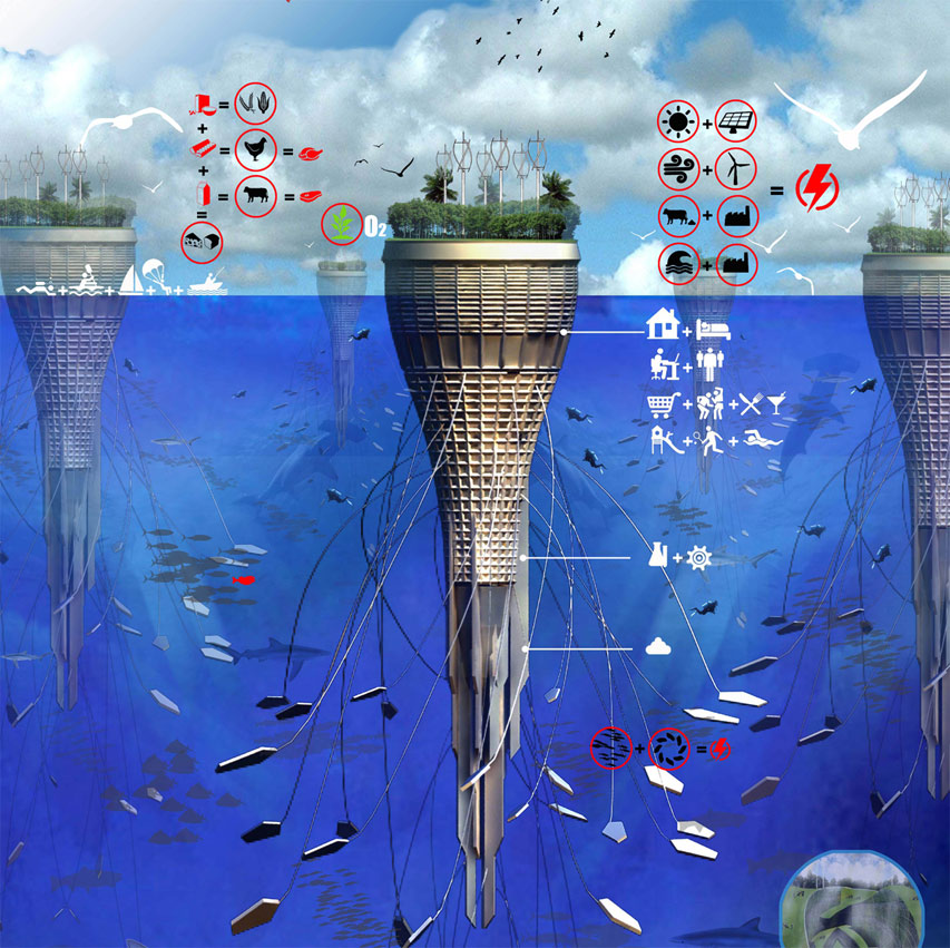 Az eVolo (építészeti és dizájn újság, amely a XXI. század technológiai újításaira, fenntartható megoldásokra és innovatív dizájnra koncentrál) erre az „igényre” alapozva 2011-ben is meghirdette a „Felhőkarcoló versenyt”, a nyertesek listáját nemrég tették közzé. A pályázók közül most a fent említett „vízkarcolót” emelnénk ki.